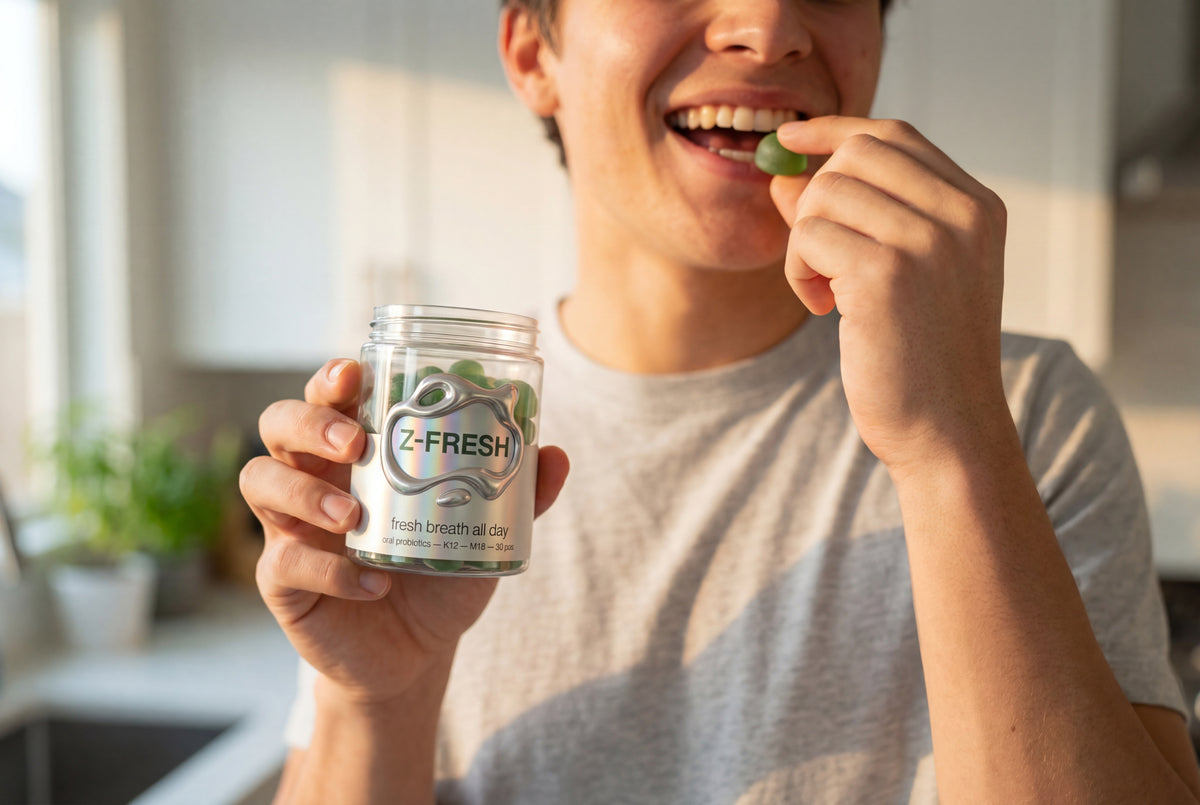 The probiotic gummy that kills bad breath at the source. Not a mask, a fix.